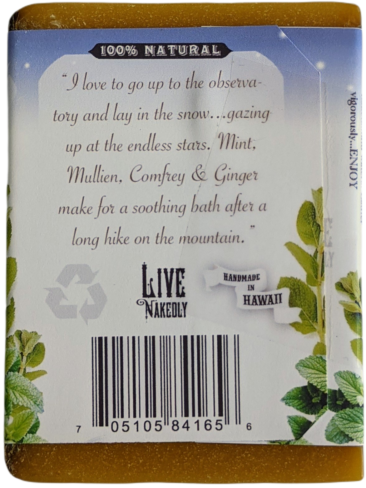 "I love to go up to the observatory and lay in the snow...gazing up at the endless stars. Mint, Mullien, Comfrey & Ginger make for a soothing bath after a long hike on the mountain."