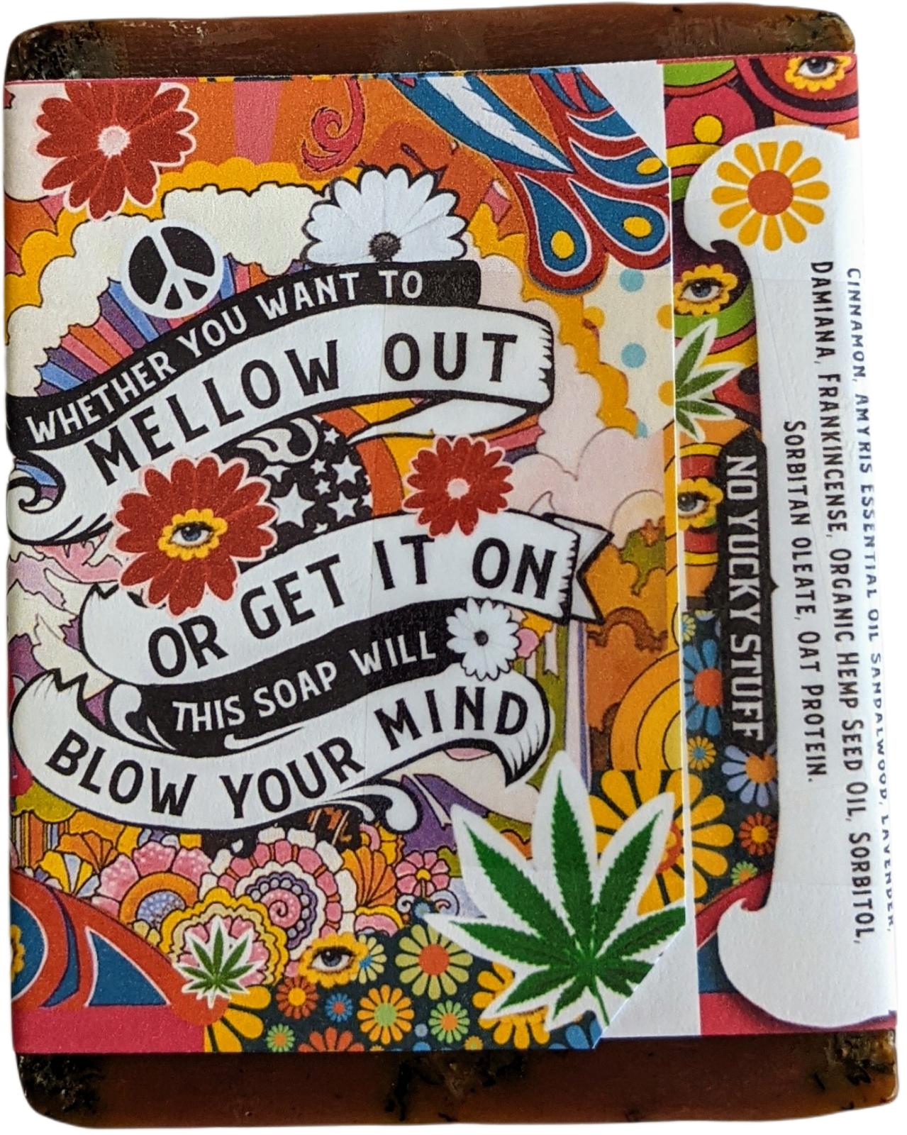 "Whether you want to mellow out, or get it on, this cosmically groovy soap will blow your mind! not to mention help all your far out brothers and sisters reach a deeper level of…um…cleanliness.”